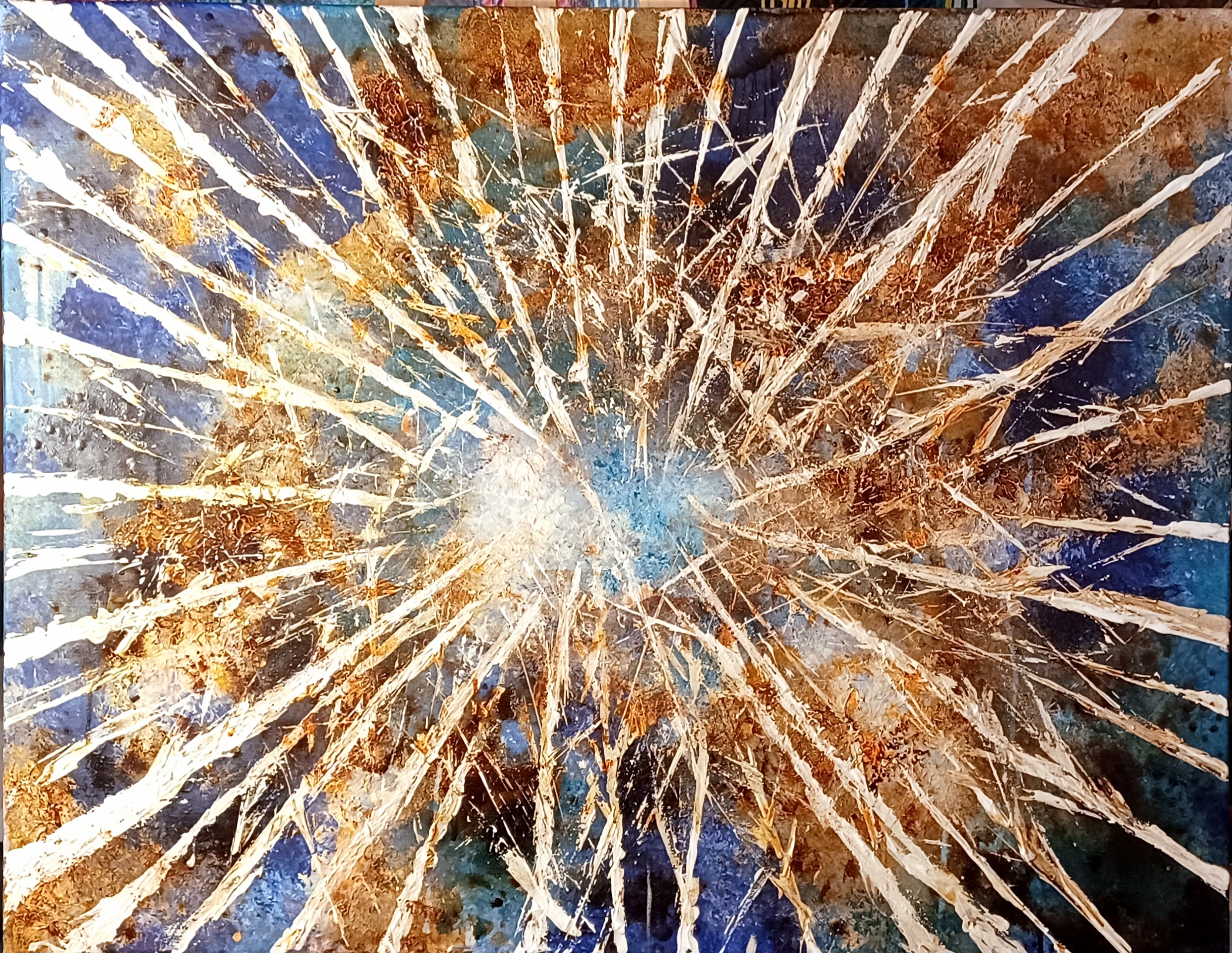 Cette toile marque une étape charnière dans l’exploration du rapport entre matière et couleur. Jusqu’alors, le travail s’était largement articulé autour d’un usage unique du café comme médium pictural, à la fois humble et vibrant. Ici, pour la première fois, il dialogue avec l’acrylique.